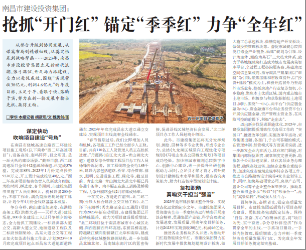 从整合升级到协同发展,从谋篇布局到精谨细致,从奠定根基到战略擘画……2023年,南昌市www.jiuyou.com集团立足新时代浪潮,张弓满弦,开足马力抓建设,全力以赴促成效,围绕“实现营收38亿元、利润4.6亿元”的年度目标,立足于早、着眼于快、落脚于实,努力在新一轮发展中抢占先机、赢得主动。 在南昌市绕城高速公路西二环建设项目施工现场(以下简称“西二环高速项目”),设备高耸、轰鸣阵阵,目之所及,是一派火热的建设场景。“截至目前,西二环高速项目全线442座涵洞通道,已完成376座,完成率85%。2023年1月份完成投资9330万元,开工累计完成投资40亿元。”西二环高速项目相关负责人仇新成介绍说,为抢时间、拼进度,春节期间,市建投集团组织施工人员近500人,机械设备200余台,不停工作业,满负荷推进现场施工建设,计划今年4月份全线路基基本成型。 争分夺秒,跑出建设加速度。在洪腾高架工程(洪都大道——天祥大道)建设场地,800多名建设工人以只争朝夕的姿态,全力抢抓工期建设。一标段洪都大道立交、高新大道立交、地面道路工程以及二标段预制梁场、昌东大道立交等工程正如火如荼进行施工作业,计划2023年10月底完成项目起点至昌东大道地面道路通车,2023年年底完成昌东大道互通立交建设、实现项目主线高架全线通车。 “春节假期过后,我们立即增加人员和机械,各项施工工作已经全面步入正轨,目前,共有110名工人及管理人员正在抢抓进度。”丹霞路(沿江北大道-青山湖北大道)道路及综合管廊工程项目办工作人员杨锋告诉记者,该工程线路全长约1.85千米,建设内容包括道路、桥梁、综合管廊、排水、照明、交通设施工程、绿化等。截至目前,青山北路-青山湖北大道北半幅已具备通车条件,南半幅正在施工道路及桥梁工程,力争丹霞路全线2月底建成通车。 干在实处,方能走在前列。北二环二期(公铁大桥合建段立交互通工程)、北二环下庄湖桥(秀先路至金山互通段)项目作为2023年新启动项目,市建投集团已开始精练强兵,致力为项目建设提质增效。“北二环项目位于南昌市城市中心城区北侧,向西连接西外环高速,东接昌樟高速,跨越赣江横向衔接赣江北岸和南岸,建成后将完善区域整体路网结构,进一步加强昌北城北部、昌南城东部片区的紧密衔接,促进沿线区域经济社会发展。”北二环项目办工作人员赵琦介绍说。 此外,市建投集团还将充分发挥规划、测绘、园林等多专业优势,形成专业合力,总结《九龙湖区域竖向工程优化专项规划》《马咀山生态公园概念规划》等项目成功经验,加快市城市规划总院数字中心、创新中心建设,进一步提升科研创新驱动力。同时,立足引才聚才育才,提升规划设计勘测技术水平和层次,提高咨询决策能力,助力打造智库型规划设计院。 2023年是市建投集团整合升级、实现常态化运营的起步之年。市建投集团深入贯彻落实全市一季度经济运行精彩开局座谈会精神,贯通集团产业链,科学合理确定发展速度、发展质量,明确年度目标任务,计划2023年实现营收38亿元、利润4.6亿元。 推进各业务板块齐头并进。为推动开门红趋势延续全年红,市建投集团努力在新时代发展中做优规划勘测设计板块、做大施工总承包板块、做精房地产开发板块、做强投资管理板块等。督促市城规总院围绕打造全产业链条,构建“规划为引领、设计为主体、测绘为基石”三大技术体系,致力于将城规总院打造成为城市发展决策智库平台、全过程工程咨询服务商、基础地理空间信息集成商。指导南昌三建集团以“申特”为引领,聚焦房建和市政双提升,以“投资+建设”模式为主,积极开拓省外乃至海外市场业务。抢抓房地产行业复苏契机,小步稳跑,聚焦本土优质区域、国内重点城市土地市场,积极参与和获取招拍挂土地项目。同时,围绕“一中心,两平台”(供应链金融为中心、资金融通平台和业务投资平台)开展供应链金融、资产管理主营业务,在风险可控的前提下,积极“走出去”。 迈出新步伐促进职能优化。2023年,市建投集团把提质增效作为各项工作的“突破口”,推进改革创新,实施改革年活动,采取集团出题,各部门、子公司答题的模式,在管理体制、经营模式等方面谋求突破,进一步激发企业内在活力。优化部门职能,对集团内部岗位职责、规章制度完善更新,助推各子公司快速发展,优化各项业务办理流程,确保高效运转。加快企业整合重组步伐。加速完成市城规总院事转企各项工作,推进市公路勘察设计院等4家企业划转工作,同时,加快基础项管公司、房地产公司、置业公司等子企业整合重组步伐,推动各整合重组企业从“形似”到“形神合一”,再到“高效运转”,形成强大战斗力。 百舸争流,奋楫者先。锚定高质量发展目标,市建投集团砥砺笃行项目高标准建设,勇担使命完成既定任务,保持“自信、发奋、齐心”的精神状态,将“项目为先、实干奋进,争分夺秒拼经济”作为贯穿全年的主线,一手抓项目建设,一手抓内控管理,提质增效,全力冲刺一季度经济高质量发展开门红,为完成全年发展目标任务奠定坚实基础。