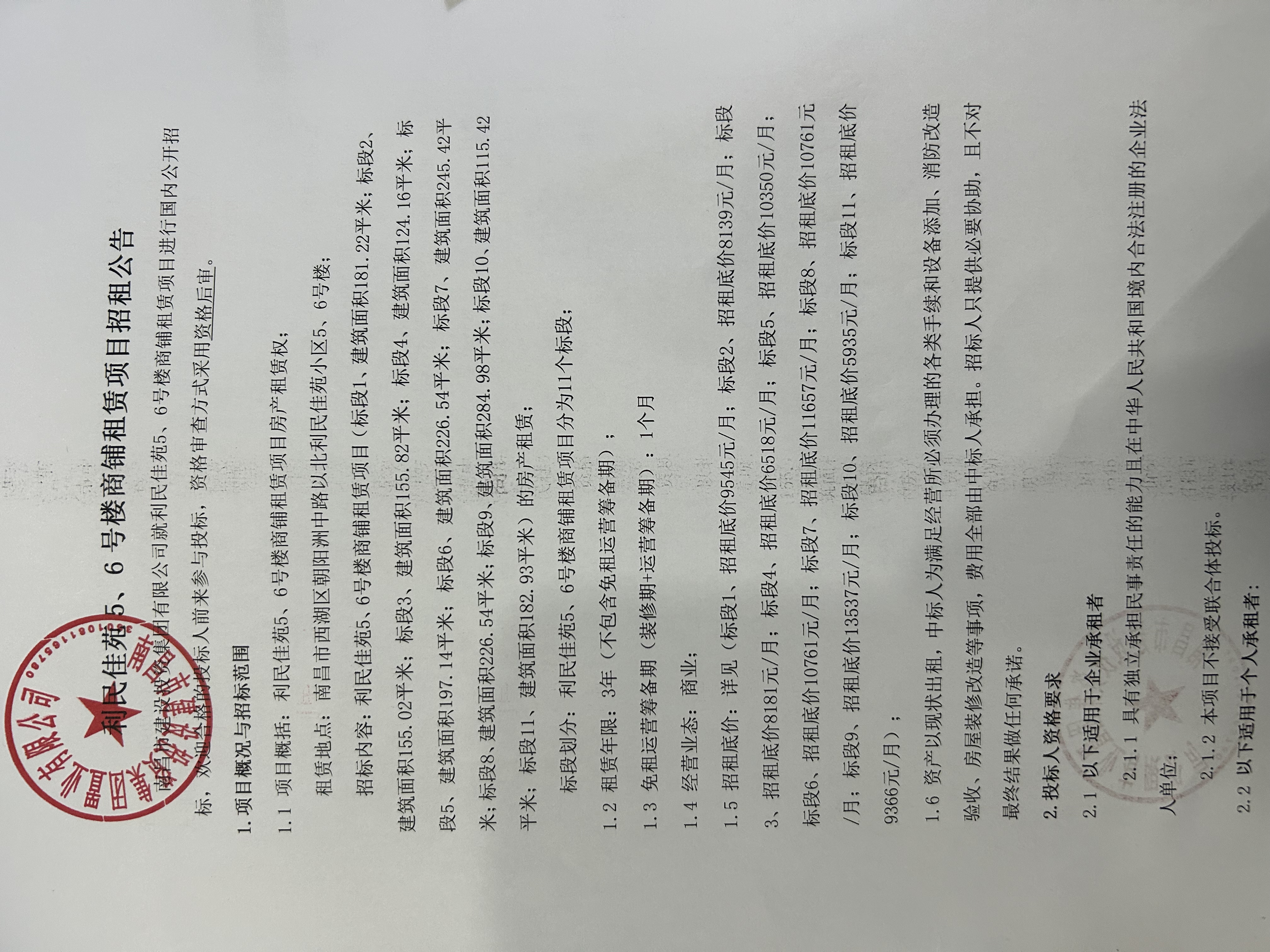 利民佳苑5、6号楼商铺租赁项目招租公告